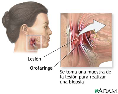 Biopsia de lesión en la garganta; Biopsia - boca o la garganta; Biopsia de lesión en la boca; Cáncer oral - biopsia