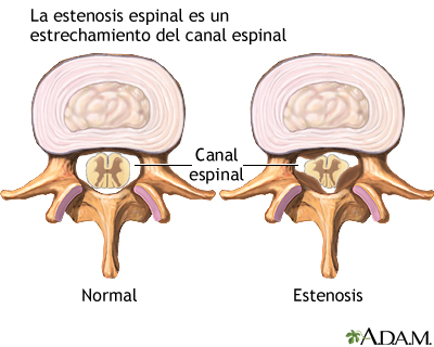 Si los espacios entre los nervios raquídeos y la médula espinal se vuelven estrechos, esto puede llevar a que se presente Estenosis raquídea. Estos problemas se llaman enfermedad degenerativa de la columna o las articulaciones.